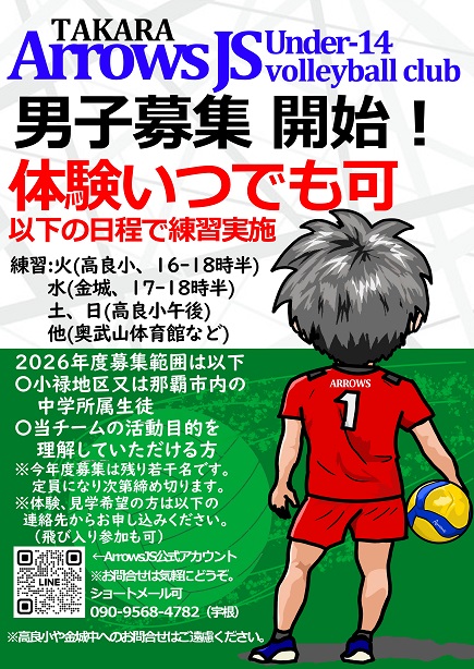 高良Arrowsバレーボールスポーツ少年団は、昨年度より、部活動の地域移行の受け皿として、U-14(14歳以下)の男子の活動を開始しました(^^♪